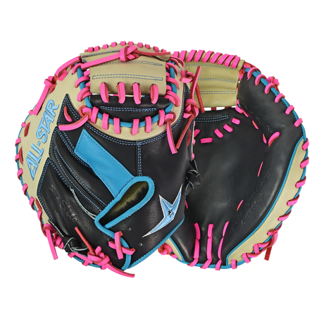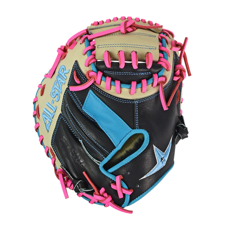 All-Star S7-Elite Pro Travel Fit Catchers Mitt/Glove - Black/Tan/Sky Blue/Pink