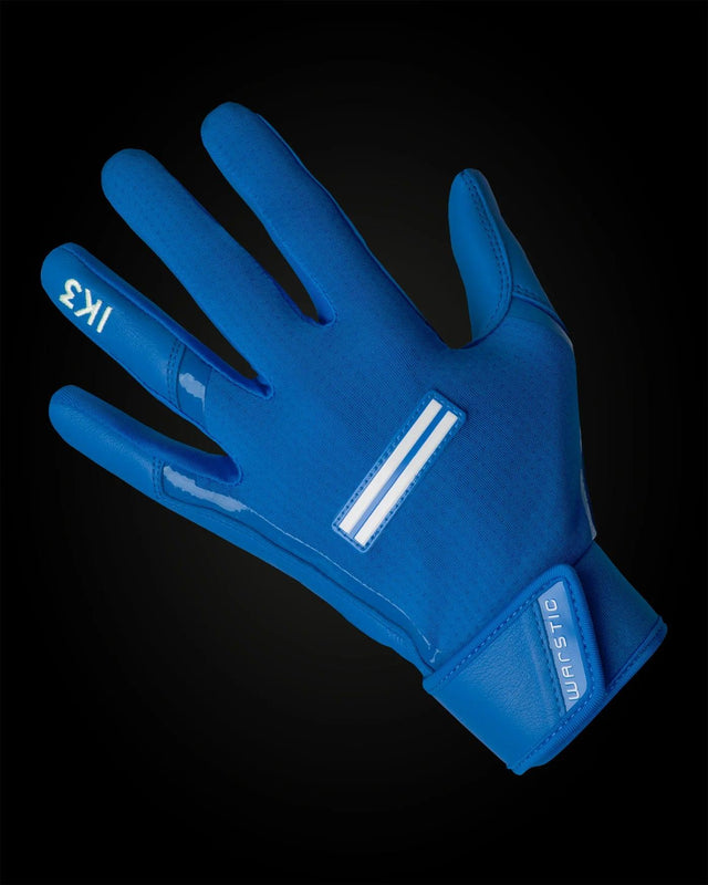 Sleek yet strong, the new IK3 Pro Batting Gloves in Blue are built to Warstic co-owner Ian Kinsler’s exacting standards. These are designed to feel like you’re not wearing any gloves; they’re lightweight, but ultra durable. That unencumbered feel makes for a more comfortable, less distracting at-bat. Made with cabretta leather on the palms and fingers, it provides flexibility while molding to your hands for that desired layer of protection. On the back of the hand, the speed mesh gives the gloves additional stretch for a better fit. Coupled with the neoprene wristband and strap, you gain some rigidity without sacrificing necessary wrist movement. With Ian’s design direction and specifications, these are our most Pro Style batting gloves ever.